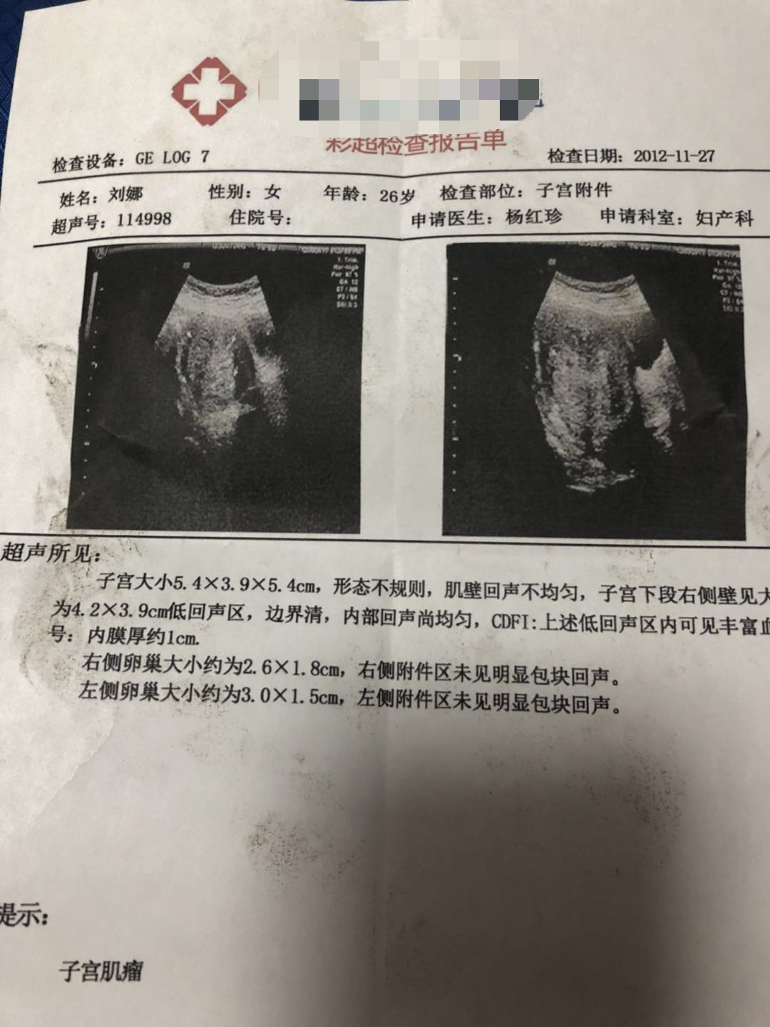 按照医生说的,半年后我又去医院做检查,检查结果是我的肌瘤又长大了,一个长到了3.4cm,一个2.1cm,医生说想要彻底根治就只能切除子宫,可是我
